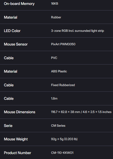 ماوس گیمینگ CM110 - بهترین ترکیب قیمت و عملکرد