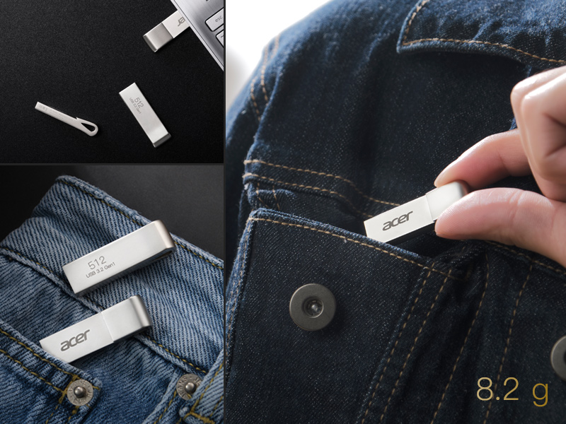 UF300 با طراحی ظریف و شکل منحنی «دم وال» خود، هم سبک است (فقط ۸.۲ گرم) و هم مدرن. طراحی ارگونومیک آن مشکل اصطکاک در هنگام نصب و خارجکردن که گریبانگیر بسیاری از حافظههای معمولی است را حل کرده است. شما به راحتی میتوانید حافظه ایسر UF300 را نصب و خارج کنید.