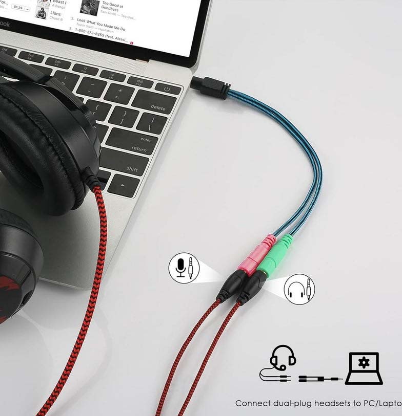 رابط (Interface): یک سر دو سوکت مادگی جک 3.5 سر دیگر جک 3.5 با پشتیبانی از میکروفن
