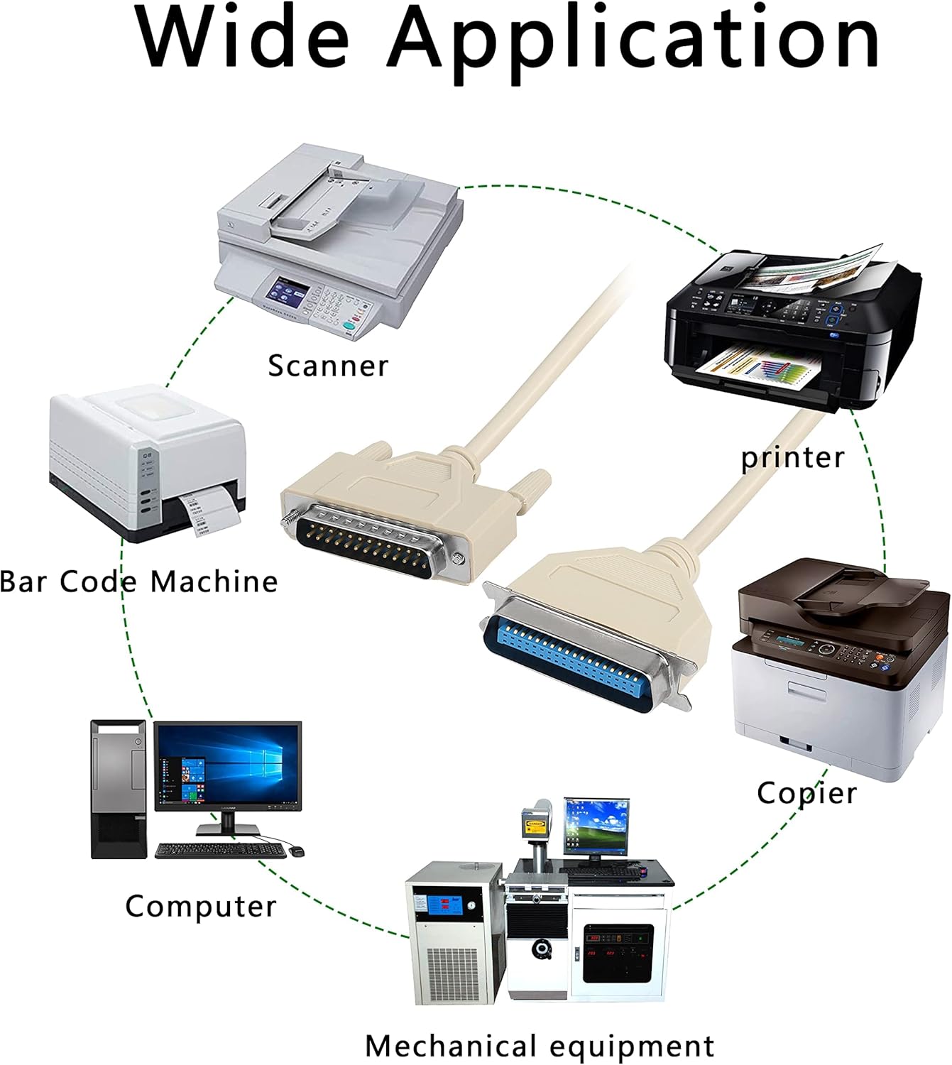 · کابل چاپگر موازی DB25 به CN36 با سازگاری گسترده، قابلیت اتصال و استفاده فوری (Plug and Play) و پشتیبانی گسترده از سیستمعاملهای ویندوز، اکسپی، ویستا، 7، 8، لینوکس و مک. مناسب برای چاپگرها، چاپگرهای فاق فروشگاهی، تجهیزات اتوماسیون و سیستمهای کنترل تجهیزات صنعتی. به اندازه کافی مقاوم و طراحی شده برای استفاده در محیطهای صنعتی.