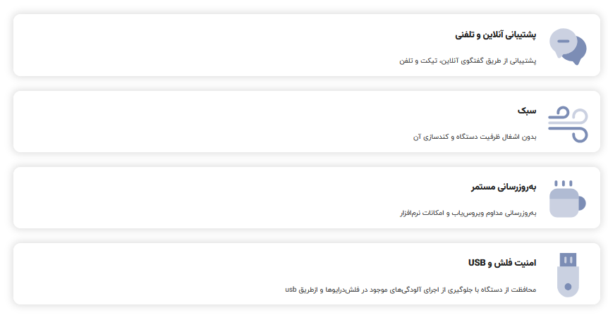 لطفا توجه داشته باشید که ضدویروس شید، قابلیتهای امنیت اینترنتی مانند دیوار آتش، امنیت خرید و پرداخت، امنیت مرورگر و امنیت امور بانکی را ندارد.